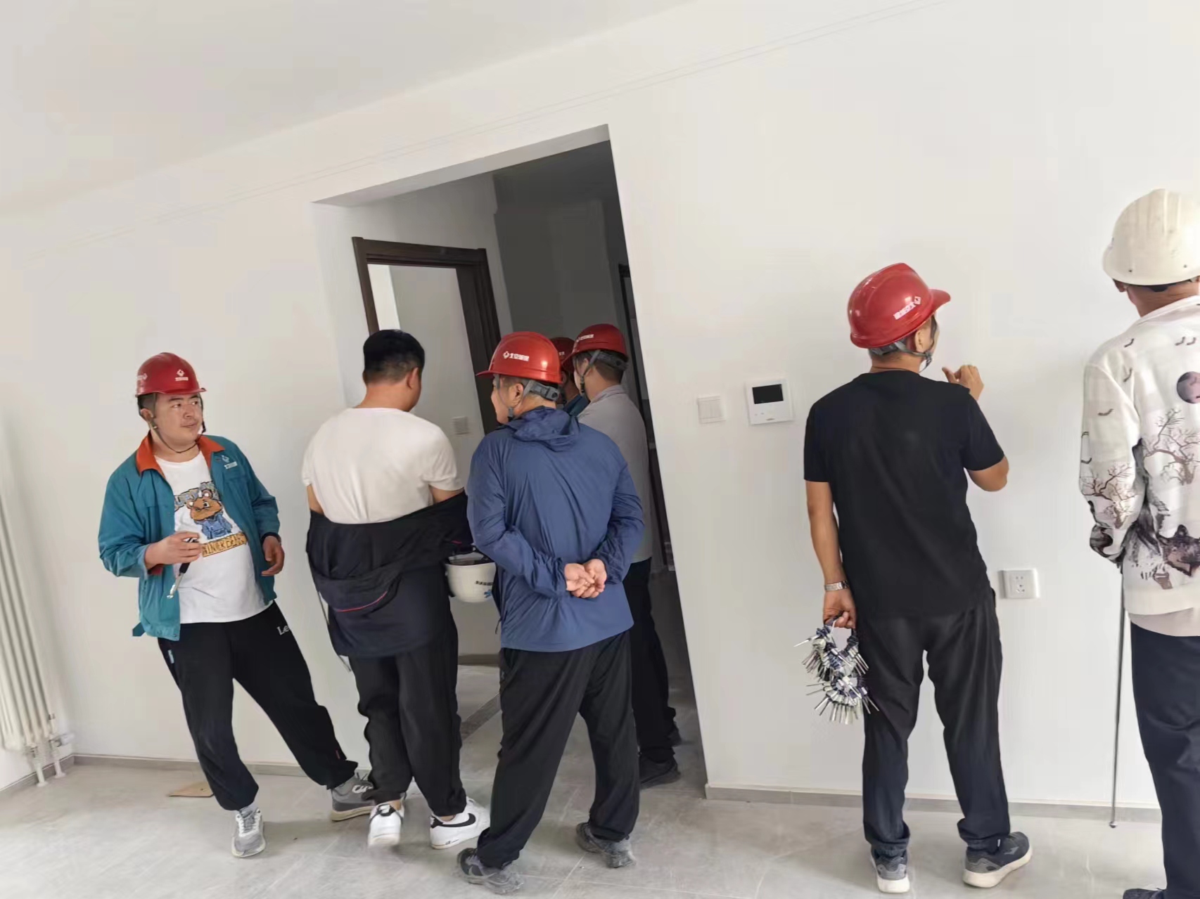 經(jīng)過(guò)昌平沙河項(xiàng)目部全體人員和公司人員的努力和付出,沙河項(xiàng)目取得了階段性的成果,今天由總包,監(jiān)理,甲方共同組織對(duì)我公司承接的三區(qū)7號(hào)樓進(jìn)行首次分戶驗(yàn)收和提出相應(yīng)的驗(yàn)收標(biāo)準(zhǔn)。