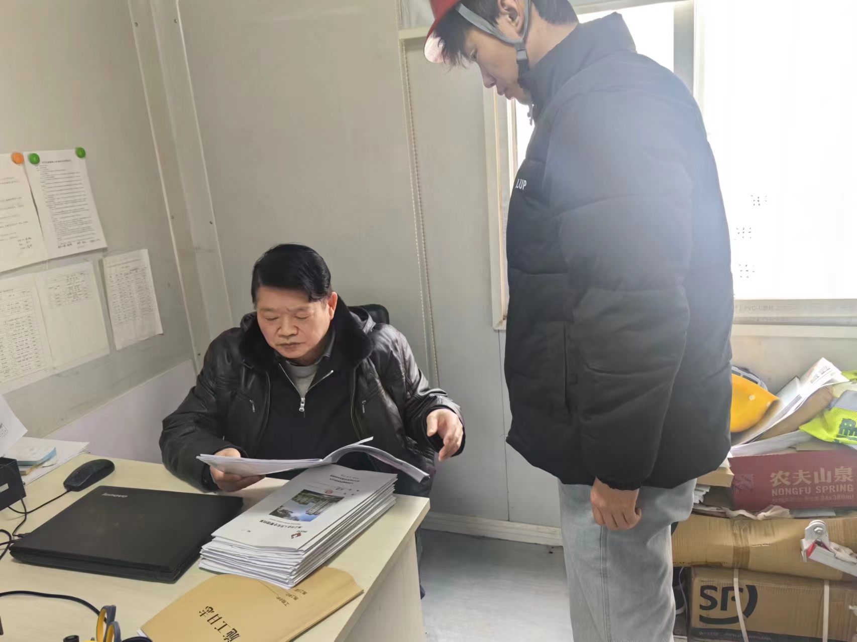 公司劉總、張部長對沙河項目現(xiàn)場所需的材料規(guī)劃進行核實并作出調(diào)整