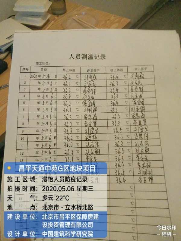 項目上人員體溫檢測無異常。